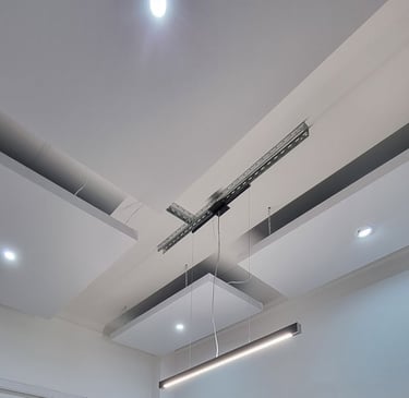 Control acústico suspendido para frecuencias graves. Su formato colgante optimiza el rendimiento sin ocupar superficie útil.