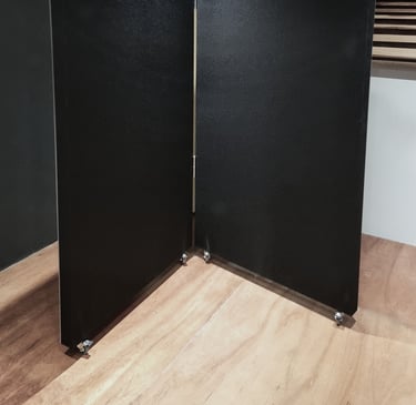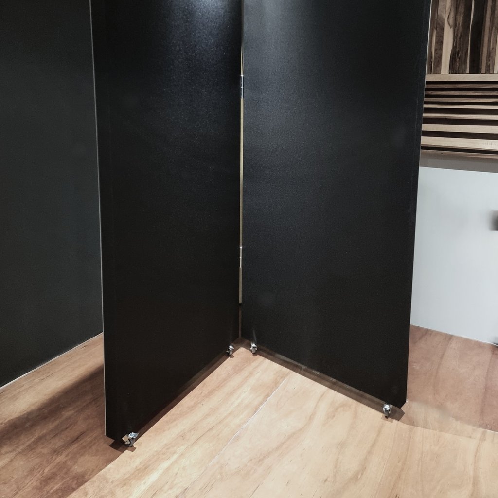 Divisores móviles articulados que reducen el ruido ambiental. Una alternativa ligera para oficinas abiertas o espacios de trabajo colaborativo.