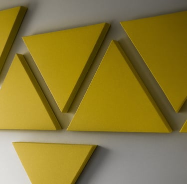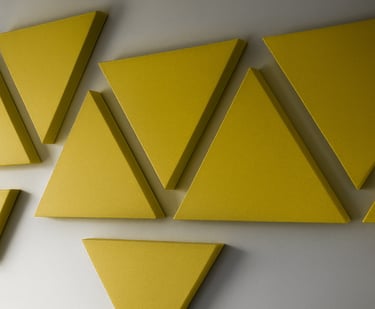 El diseño triangular aporta tensión visual y un juego de diagonales único. Combinado con una absorción acústica sólida y estable, ofrece una presencia refinada que eleva el nivel de cualquier espacio.