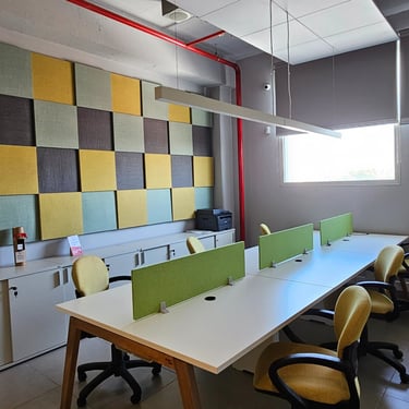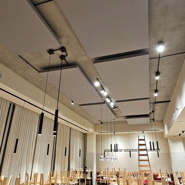 Nuestros paneles integran diseño y absorción acústica para lograr una atmósfera cálida, controlada y visualmente atractiva.