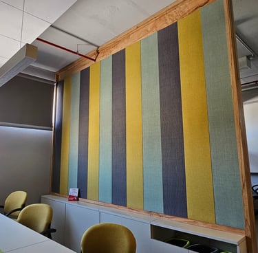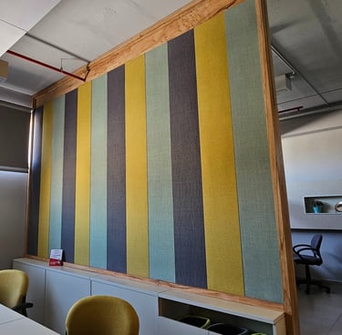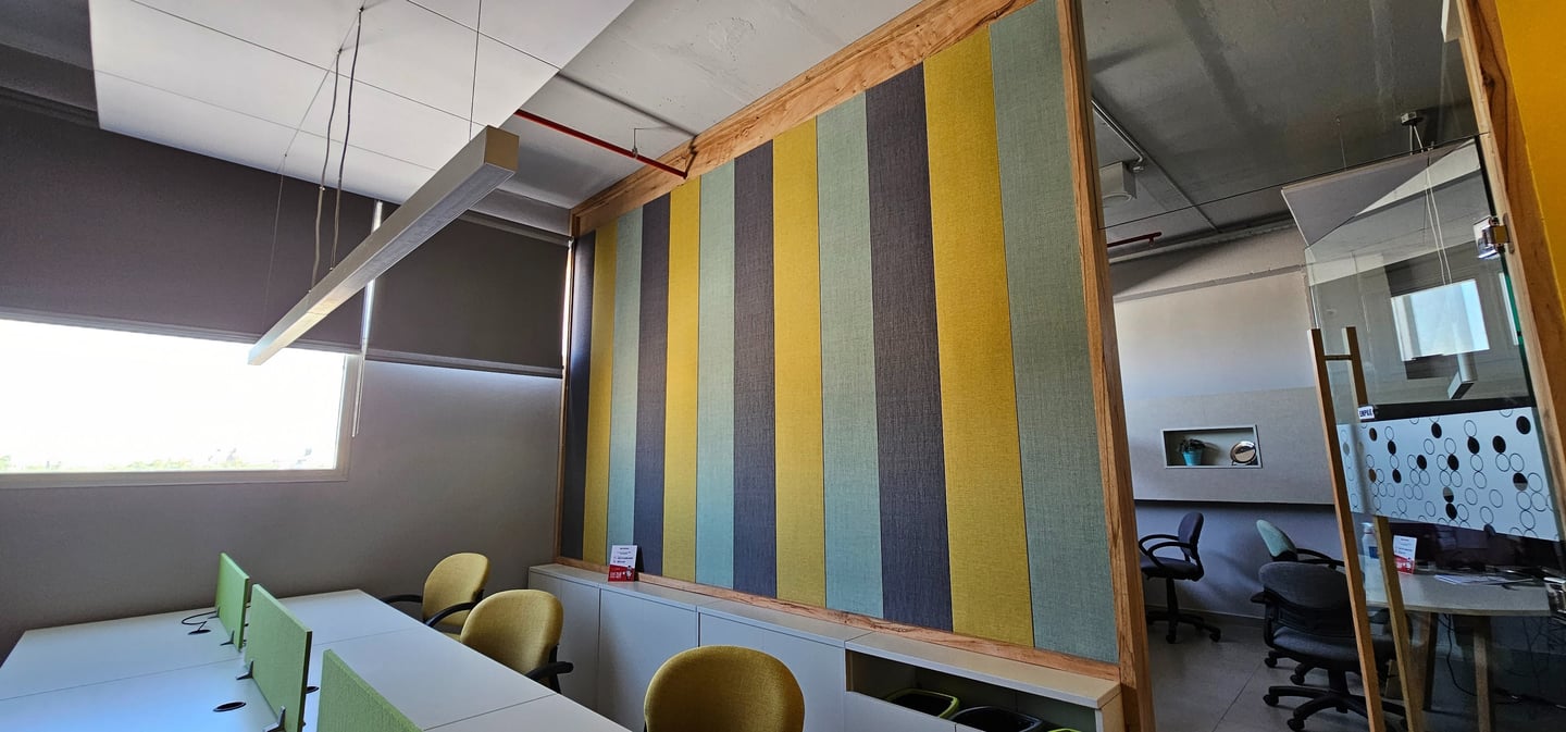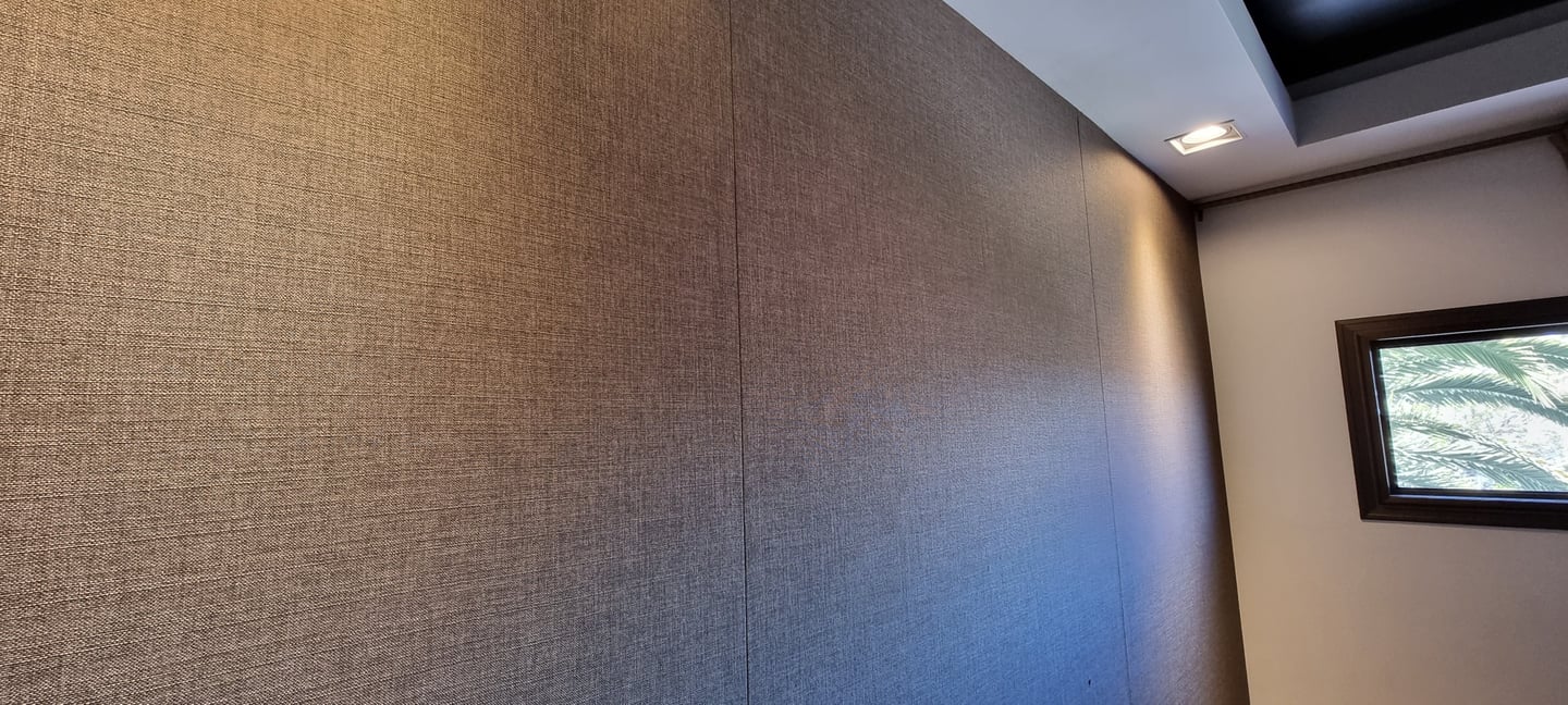 El revestimiento continuo crea un plano de confort sensorial en el espacio. Su naturaleza fonoabsorbente, sumada a un acabado textil preciso, transforma el ambiente en una experiencia acústica y visualmente envolvente.